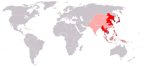 В период с момента вступления Японской империи во Вторую мировую войну в декабре 1941 года по май 1942 год силы Японской императорской армии подчинили себе значительную часть британских, французских и американских колоний на Азиатском континенте и в Тихом океане, а именно: небольшие части Французского Индокитая и Британской Индии, Малайю, Бирму, Филиппинский архипелаг, Голландскую Ост-Индию (Индонезийский архипелаг), часть Новой Гвинеи и ряд тихоокеанских островов, таких, как Соломоновы острова и острова Гилберта, Гуам и атолл Уэйк. Кроме того, с 1931 года Японией контролировалась территория Маньчжурии, на которой было образовано марионеточное государство Маньчжоу-го, а с 1937 года, после серии успешных военных действий в Китае в ходе Японо-китайской войны, также восток Внутренней Монголии (государство Мэнцзян) и ряд китайских территорий, граничащих с побережьем Восточно-Китайского и Южно-Китайского морей.