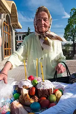 В Херсонской области для тех, кто был в дороге и не сидел за праздничным столом вместе с семьёй, хозяйка отрезала кусок пасхи и, завернув его в рушник вместе с тремя крашенками, клала в красный угол[23].
