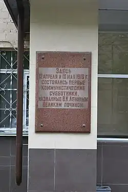 - В депо Москва-Сортировочная в 1957 году был открыт музей «Великому почину», посвящённый первому субботнику. Также на входе в депо расположена памятная плита с текстом: «Здесь 12 апреля и 10 мая 1919 г. состоялись первые коммунистические субботники, названные В.И.Лениным Великим почином».