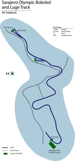 Соревнования проводились на санно-бобслейной трассе Требевич[17], уклон которой составлял 10,2°.
