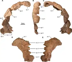Авторы описания отметили две уникальные черты, или аутапоморфии: на краю шейного «воротника» имеются широкие костные выросты, выдающиеся вперёд и нависающие над воротником. Таз имеет расширенный прямоугольный нижний конец[2].