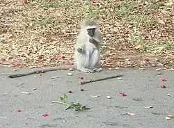 Стая верветок в Южной Африке питается кукурузными и иными зёрнами