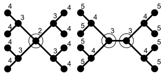 В качестве другого класса примеров можно использовать свободное дерево T, которое имеет сепаратор S, состоящий из одной вершины, удаление которой разделяет T на две (или более) связные компоненты, каждая из которых имеет размер, не превосходящий n/2. Точнее, существует в точности одна или две вершины, в зависимости от того, является ли дерево центрированным или бицентрированным[2].