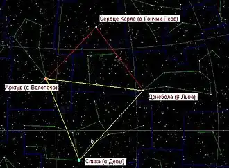 Иногда к астеризму добавляется звезда Сердце Карла (α Гончих Псов), дополняющая треугольник до ромба. В этом варианте астеризм известен как Ожерелье[1] Девы (Бриллиант Девы).