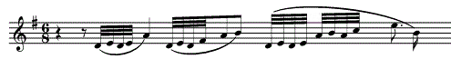 Ближе к концу каденции композитор вводит мелодию в размере 2/4, которая исполняется скрипкой во второй раз после «возвращения» оркестра[17]: