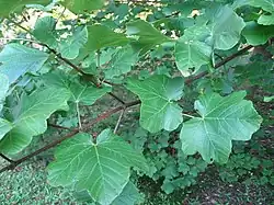 | Acer sterculiaceum Wall. | Lithocarpa | Клён Франше | Acer franchetii Pax, Acer thomsonii Miq., Acer tsinglingense W.P.Fang & Y.T.Hsieh, Acer villosum Wall. | Китай (Чжэцзян, Юньнань, Гуйчжоу, Хэнань, Хубэй, Шаньси, Сычуань, Хунань), Бутан, Индия (Сикким, Ассам), Непал, Мьянма | |