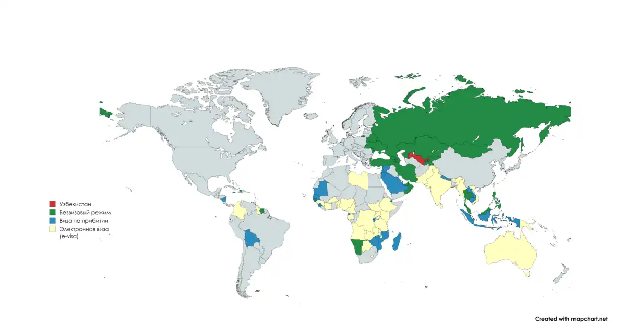 Выездные визы были отменены 1 января 2019 года после вступления в силу указа президента, подписанного в августе 2017 года.[2] Теперь для выезда заграницу, граждане Узбекистана должны оформить загранпаспорт, который выдается сроком на 10 лет.