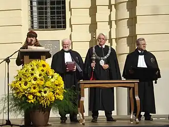 - ↑ Президенту Франции присвоено звание почетного доктора ВУ. ru.Delfi.lt. Delfi (29 сентября 2020). Дата обращения: 3 октября 2020. Архивировано 4 октября 2020 года.