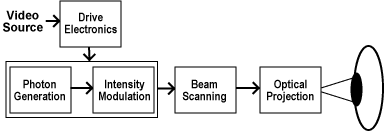 Технология VRD стала возможной благодаря нескольким разработкам. В частности, это появление LED-систем высокой яркости, позволившие видеть изображение при дневном свете, и появление адаптивной оптики.