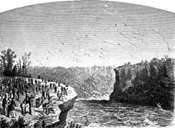 Помимо своего прямого предназначения, мост стал смотровой площадкой многочисленных шоу, которые устраивали предприниматели над ущельем. В частности, недалеко от моста выполняли головокружительные и опасные для жизни трюки канатоходцы: Жан Франсуа Гравле («Шарль Блонден»), Уильям Хант («Великий Фарини»), Сэмюэл Диксон, Клиффорд Калверли, Мария Спелтерини и другие[88][89]. До начала Гражданской войны мост служил частью одного из четырёх основных маршрутов так называемой «Подземной железной дороги» — тайной системы, применявшейся для организации побегов рабов из южных штатов США в свободную от рабовладения Канаду[90].