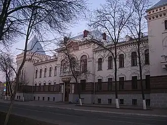 Главный корпус академии располагается в бывшем здании Крестьянского банка.