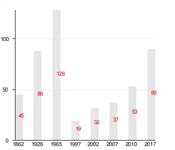 | 1862[20] | 2002[21] | 2007[22] | 2010[23] | 2017[1] |