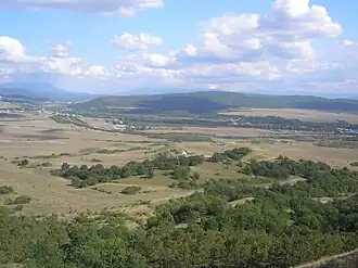 - ↑ Этот географический объект расположен на территории Крымского полуострова, бо́льшая часть которого является объектом территориальных разногласий между Россией, контролирующей спорную территорию, и Украиной, в пределах признанных большинством государств — членов ООН границ которой спорная территория находится. Согласно федеративному устройству России, на спорной территории Крыма располагаются субъекты Российской Федерации — Республика Крым и город федерального значения Севастополь. Согласно административному делению Украины, на спорной территории Крыма располагаются регионы Украины — Автономная Республика Крым и город со специальным статусом Севастополь.