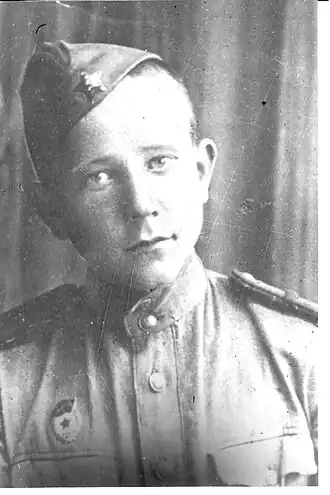 Участник боевых действий за Сталинград. Летом 1943 года воевал в составе 13-й гвардейской стрелковой дивизии на Курской дуге, а в сентябре принимал участие в освобождении Полтавы. В начале 1944 года, принимал участие в боях за Кривой Рог. Его разведгруппа уничтожила артиллерийские расчёты немецких орудий и удерживала позиции до прибытия советских танков. За этот подвиг юный герой был представлен ко второй медали «За отвагу»[2].