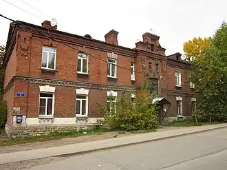 - Жилой дом (ул. Тополевая, 12) — трёхэтажное здание прямоугольной формы, расположенное на Тополёвой улице. Главный юго-восточный фасад с двумя входами обращён во двор. Основные габариты: 39 × 10,7 м; размер кирпича: 250 × 120 × 60 мм.