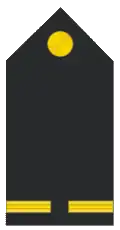 | Российское соответствие[2] | Адмирал флота | Адмирал | Вице-адмирал | Капитан 1-го ранга | Капитан 2-го ранга | Капитан 3-го ранга | Капитан-лейтенант | Старший лейтенант | Лейтенант |
