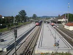 В 1992 был заложен двунаправленный городской участок железной дороги, к северо-западу от вокзала, который ответвлялся от Дурлахер-аллеи и поворачивал после пересечения дороги Баден-Пфальцского участка железной дороги в сторону Мюлакера. Параллельно на вокзале находится остановка с 2 боковыми платформами, на которых сегодня (2011) действует сообщение маршрутов городских электричек (S-bahn) S4 и S5. Все платформы взаимосвязаны путями друг с другом.