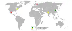 Годовое мировое производство волластонита оценивается примерно в 600—1000 тысяч тонн. Месторождения волластонита разрабатываются в Китае, Индии и Финляндии. Обнаружены запасы минерала в Сербии, России, Австралии и Греции. В Кыргызстане в районе Сандалашского хребта разведано легкодоступное месторождение волластонита объемом около 8 куб. километров. Производство синтетического волластонита ограничено и осуществляется лишь в отдельных странах: США, Дании, Италии, Германии и России (опытное производство).
