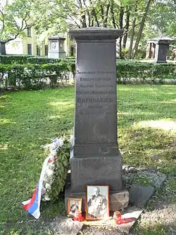 - ↑ Кобак А. В., Пирютко Ю. М. Исторические кладбища Санкт-Петербурга. — Изд. 2-е, дораб. и испр. — М. : Центрполиграф ; СПб. : Русская тройка — СПб, 2011. — С. 236, 309. — ISBN 978-5-227-02688-0. — OCLC 812571864.
