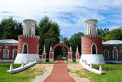 Основные постройки, до сих пор определяющие облик усадьбы, возводились в конце XVIII века, при генерал-фельдмаршале Н. В. Репнине[9]. Это, прежде всего, ансамбль парадного въезда со стороны Калужской дороги (ныне улица Архитектора Власова), где на границе усадьбы была возведена мемориально-триумфальная «турецкая крепость» — напоминание о взятии Н. В. Репниным в ходе Русско-турецкой войны города Мачина. Лесной массив к югу от парадного двора и к северу от него по берегам прудов был превращен в пейзажный парк[9].