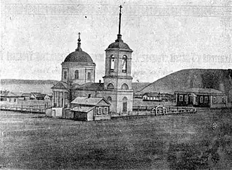 В 1751 году в селе Ахмат была возведена первая деревянная православная церковь с престолом во имя Архангела Михаила. Освящение храма состоялось в 1753 году. В 1827 году старую церковь разобрали, а строительный материал продали в Красный Яр Новоузенского уезда. Новый каменный храм возвели в стороне от подверженного оползням берега, а на месте престола старого храма была сооружена часовня[1][2].