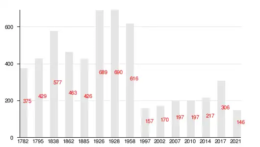 | 1782 | 1795 | 1838 | 1862[27] | 1885 | 1928 | 1958 |