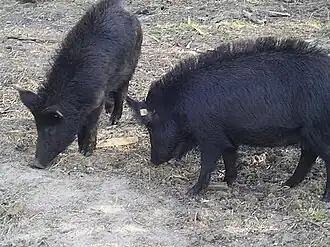 Похожие породы свиней, выращиваемые в пастбищных условиях, имеются в дельте реки Дунай в Румынии, на острове Сардиния в Италии и на Пиренейском полуострове в приграничных областях Испании и Португалии.