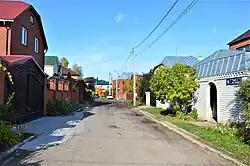 Первоначально указанный посёлок имел одноэтажную усадебную застройку, которая до настоящего времени не сохранилась. Сейчас на этом месте находятся несколько трёх- и четырёхэтажных многоквартирных домов, двух- и трёхэтажные дома коттеджного типа, а также одно крупное двухэтажное домовладение дворцового типа (ул. Строителей, 1). В основном эти здания были возведены в 2010-е годы.