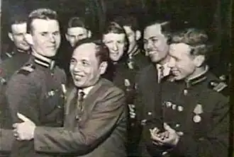 В 1941 году в обороне Москвы среди ополченцев было и несколько вьетнамских добровольцев[24]. Незначительное количество этнических вьетнамцев служило в войсках НКВД[25]. Вскоре после окончания Великой Отечественной войны И. В. Сталин оказывал помощь Хо Ши Мину в его борьбе против французских колониальных экспедиционных сил[26], и на территории Вьетнама с 26 октября 1946 по 13 января 1947 гг. работала советская военная миссия[27]. Имеются сведения об участии советских военнослужащих в Первой Индокитайской войне[28].