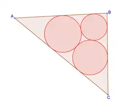 - Три окружности Мальфатти попарно касаются друг друга внутри треугольника. (см. выше)