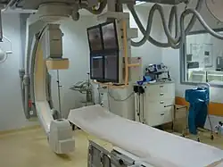 Вращательная ангиография — технология медицинской визуализации, основанная на рентгеновском излучении, которая позволяет получить изображения, похожие на изображение, получаемые с помощью компьютерной томографии. Эта технология медицинской визуализации используется в гибридных операционных или во время установки катетера с помощью фиксированной С-дуги. Для получения изображения фиксированная С-дуга вращается вокруг пациента и получает серию 2-мерных рентгеновских изображений, которые с помощью алгоритмов компьютерной графики реконструируются в 3-мерное изображение[1].