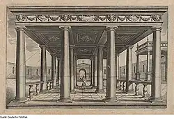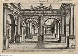 Двойной портик, увенчанный фронтоном. Из серии «Разные архитектурные формы». Ок. 1601. Офорт