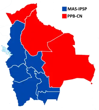В результате президентом вновь был избран Эво Моралес от партии Движение к социализму, набравший более 64 % голосов избирателей, а его партия получила большинство мест в Палате депутатов и Палате сенаторов.