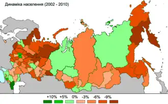 По предварительным итогам переписи, оглашённым в марте 2011 года, население России составило 142 905 200 человек[52], сократившись с предыдущей переписи на 2,3 млн человек. При переписи было учтено 90 тыс граждан РФ, находящихся в это время в командировке по линии органов государственной власти, и их семей. Также были учтены 489 тыс. человек, временно пребывавших на территории РФ[53]. Согласно докладу ООН, в 2011 году Россия по численности населения занимала девятое место в мире[54]. Подведение окончательных итогов переписи было проведено в четвёртом квартале 2013 года[1].