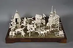 Начиная с XI века резьба по дереву стала одним из главных украшений домов, общественных зданий, а также крупных и речных судов. В музее представлены элементы крестьянского декора: карнизы, фризы, колонки с капителями в самобытной трактовке, а также оконные и светолочные наличники. Фрагменты домовых росписей попали в музей из коллекции Л. А. Кожевниковой и И. П. Работновой, сформировавших собрание предметов в ходе экспедиций в 1950—1960-е годы. В этом зале также хранятся игрушки и бытовая утварь, выполненная в стилистике деревянного быта. В витринах можно увидеть коллекцию инструментов, выполненных в стиле хохлома, а также изделия резьбы по дереву, выполненные мастерами Якутии, Тобольска, Чукотки, а с XVIII века — и Москвы, Вологды, Великого Устюга, Новгорода и Сольвычегодска[13]. В 2014 году в музее открылась новая постоянная экспозиция предметов лаковых миниатюр[14].