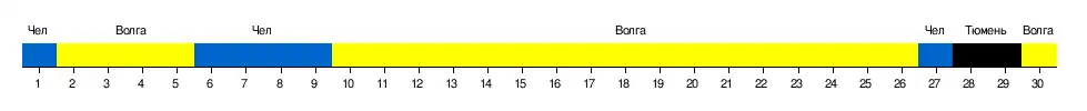| 3 | Тюмень | 28 | 18 | 6 | 4 | 79 − 30 | +49 | 60 | |