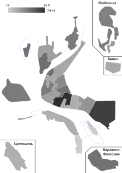 | 12 | 74-76, 82, 110, 111, 113-115, 117 | Октябрьский, Соломбала | 19 145 |