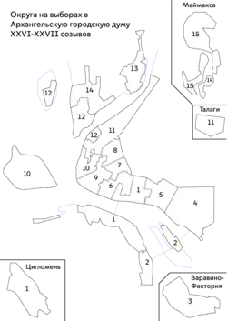 - ↑ Выборы депутатов Архангельской городской Думы двадцать шестого созыва (схема избирательных округов) (недоступная ссылка — история).