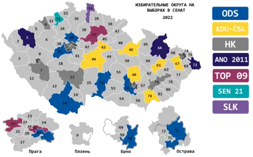 Выборы в Сенат Чехии 2022 года прошли 23 — 24 сентября 2022 года (1-й тур) и 30 — 1 октября 2022 года (2-й тур)[1]. В ходе выборов по мажоритарной избирательной системе в два тура было переизбрано 27 сенаторов из 81. Первый тур сенатских выборов прошёл одновременно с муниципальными выборами[2]. На выборах победила коалиция «SPOLU», больше всего сенаторов получила партия ODS[3].