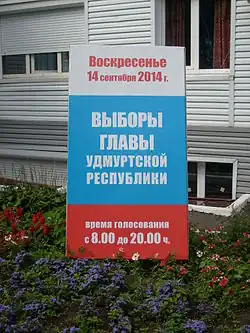 - ↑ Досрочное голосование стартовало на выборах главы Удмуртии (недоступная ссылка — история). ИА СУСАНИН (3 сентября 2014). Дата обращения: 15 сентября 2014.