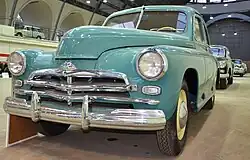«Победа» поздней 2-й производственной серии с «двухэтажной» полосной решёткой радиатора на Лейпцигской ярмарке 1954 года