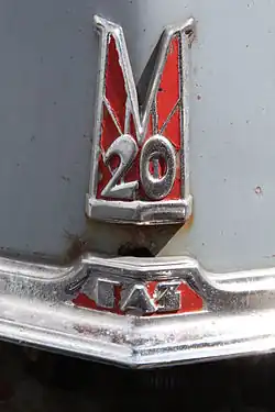 • М-20В или ГАЗ-20В[35] (1955—1958) — модернизированная «Победа», «третья серия», двигатель 52 л. с., новое оформление облицовки радиатора, исключена перемычка между клыками бампера, радиоприёмник как стандартное оборудование, антенна на поворотном основании, новая конструкция балки переднего моста, модернизированный карбюратор «К-22 Е», новый воздушный фильтр, новый руль с кольцевой кнопкой сигнала, ярко-красная окраска шкал приборов и часов изменена на коричневую;