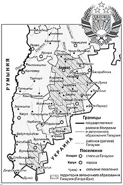 Как и в случае с бессарабскими болгарами, из состава которых гагаузы выделились к концу XIX века[2], территория компактного проживания гагаузов оказалась разделена административной границей между УССР и МССР, которая превратилась в государственную границу после распада СССР. При этом в советский период, в отличие от постсоветского, число гагаузов в УССР непрерывно росло, увеличившись с 23,5 до 32,0 тыс. человек[1]. В 1959—1989 году для гагаузов УССР был также характерен миграционный отток в МССР, а также в РСФСР, где к началу 90-х сформировалась довольно многочисленная гагаузская диаспора.