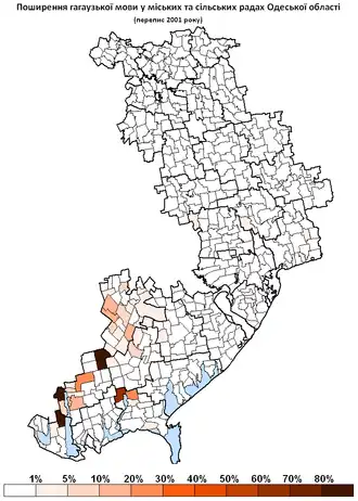 При этом в Одесской области число гагаузов увеличилось на 0,9 % между переписями 1989 и 2001 годов.