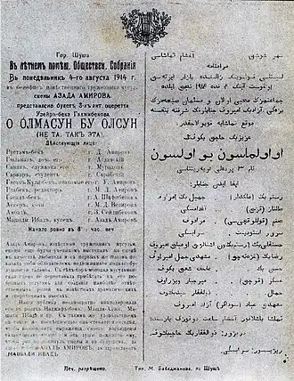 - ↑ Musiqili ömrün şərəfli salnaməsi - Üzeyir Hacıbəyov. Milli.Az (азерб.). 18 сентября 2012. Архивировано 3 июня 2017. Дата обращения: 19 мая 2017.