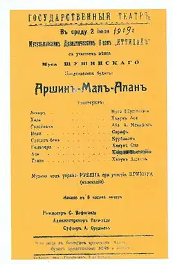 - ↑ Всемирное признание "Аршин мал алан". ЮНЕСКО отпразднует 100-летие знаменитой азербайджанской оперетты. Газета «Зеркало». Дата обращения: 2 августа 2012. Архивировано из оригинала 4 августа 2012 года.