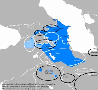 - ↑ Р. А. Рустамов. Формы настоящего времени в диалектах и говорах азербайджанского языка // Вопросы диалектологии тюркских языков. — 1966. — Т. IV. — С. 38.