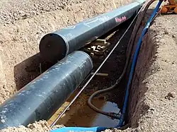 Газопрово́д — инженерное сооружение, предназначенное для транспортировки природного газа с помощью трубопровода. Газ по газопроводам и газовым сетям подаётся под определённым избыточным давлением[1].