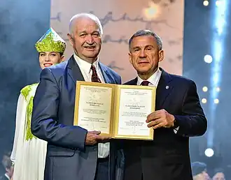 - ↑ Президент Татарстана вручил Государственные премии имени Габдуллы Тукая. Президент Республики Татарстан (26 апреля 2019). Дата обращения: 6 декабря 2021. Архивировано 1 мая 2021 года.