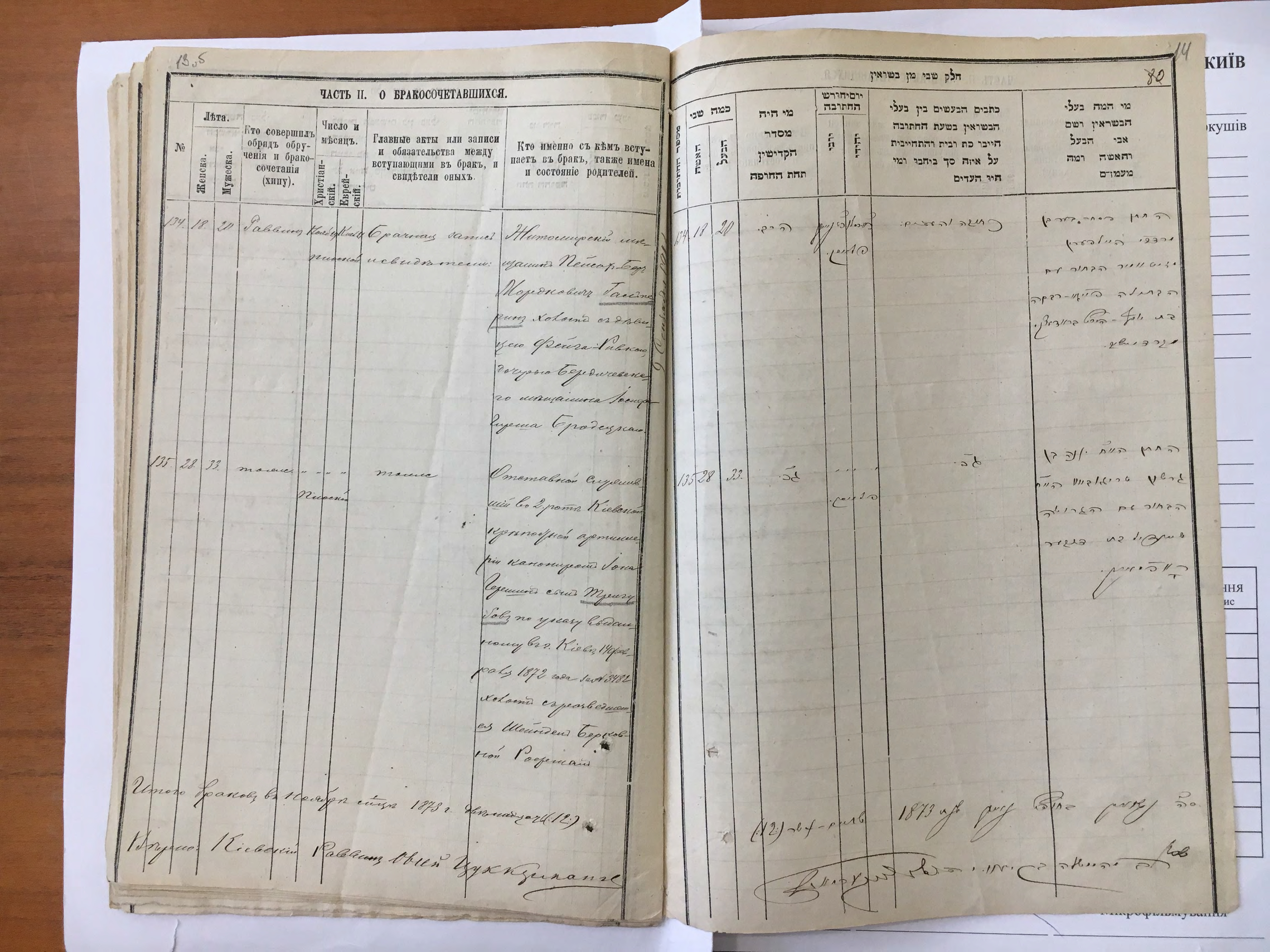 - ↑ Запись о бракосочетании в канцелярии киевского городского раввина Архивная копия от 19 января 2025 на Wayback Machine: Житомирский мещанин Пейсах-Бер Мордкович Гальперин, 20 лет, холост, с девицею Фейгой-Ривкою, 18 лет, дочерью бердичевского мещанина Йосифа-Гирша Бродецкого.